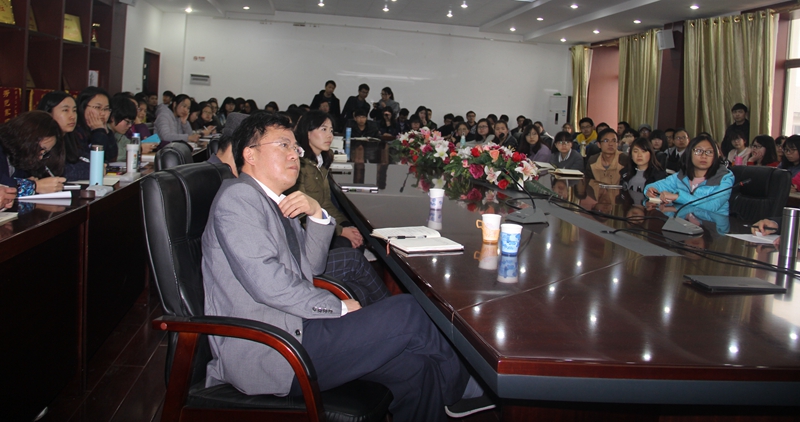礼聘仪式结束后,张耀辉先生为来自全校各学院的师生做了题为《如何读四书》的精彩演讲。张教授围绕“什么是明德,怎样做到明德,扎根于中庸”这一主题,从自身从商与日常生活的生命体验出发,对四书做了独到的阐释,终以“平正温厚”作结,发人深省。演讲互动环节气氛活跃,张教授为提问师生一一去疑解惑,赢得阵阵掌声。礼聘仪式与讲座由人文学院副院长王玉琦主持。